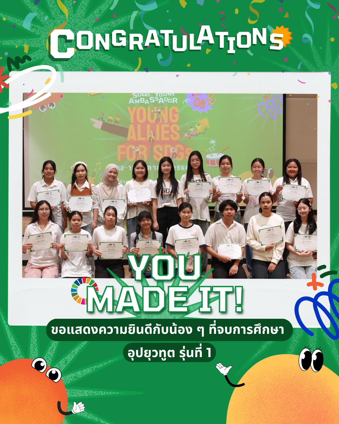 ำหรับน้อง ๆ นักเรียนมัธยมปลายที่มีความสนใจเข้าร่วม กิจกรรมจิตอาสาแบบใหม่ ๆ เพื่อสร้างความเปลี่ยนแปลงใน สังคมให้เกิดขึ้นได้จริงโดยมีวัตถุประสงค์เพื่อบรรลุเป้าหมาย เพื่อการพัฒนาที่ยั่งยืนของสหประชาชาติ (SDGs) ที่กำลังเป็น เทรนด์โลก (Global Trend)ในขณะนี้